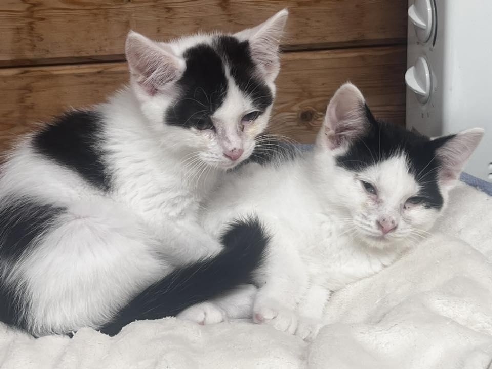 These two adorable 10-week-old kittens are ready to find their forever home together. Full of curiosity, playfulness, and kitten chaos, Bumble and Flea spend their days tumbling around, chasing toys, and snuggling up when the adventure is over.